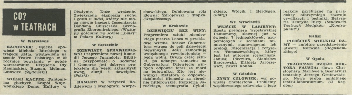 Archiwum / Teatr nr 943 (18/1963) 669/1291 Podziel się Tytuł Co w teatrach Rubryka Teatr Artykuł z numeru 943 (18/1963) Data wydania 5 maja 1963 Tagi Opole Tragiczne dzieje doktora Fausta Grotowski