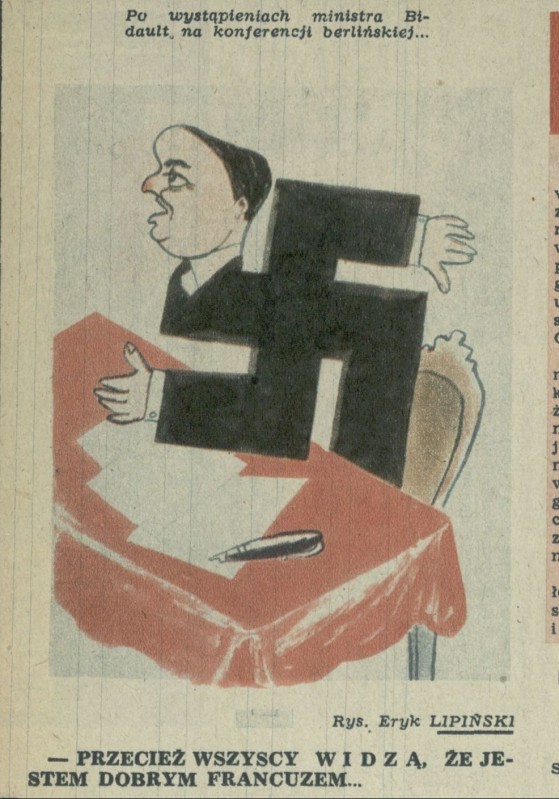 Archiwum / Rozmaitości [old] nr 464 (09/1954) 100/181 Podziel się Tytuł Konferencja Berlińska Autor Eryk Lipiński Rubryka Rozmaitości [old] Artykuł z numeru 464 (9/1954) Data wydania 28 lutego 1954 Tagi satyra polityka propaganda karykatura swastyka Bidault