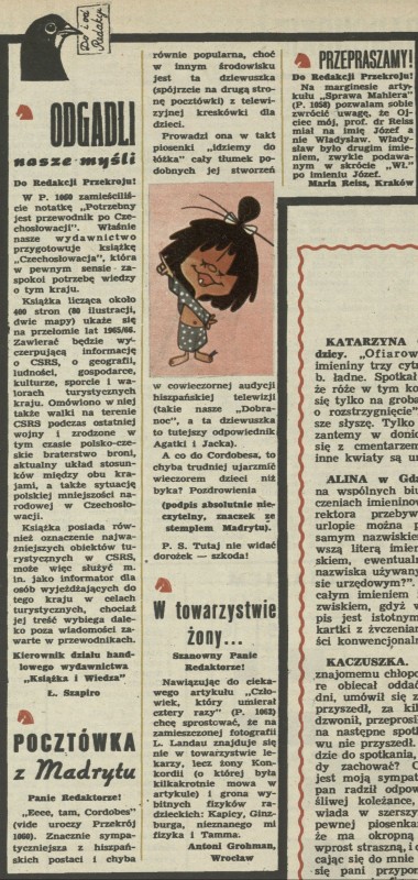 Archiwum / Listy do i od redakcji nr 1066 (37/1965) 44708/123969 Podziel się Tytuł Do i od redakcji Rubryka Listy do i od redakcji Artykuł z numeru 1066 (37/1965) Data wydania 12 września 1965