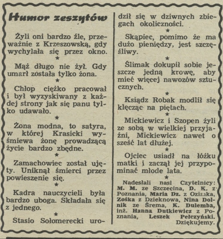 Archiwum / Humor zeszytów szkolnych nr 946 (21/1963) 202/483 Podziel się Tytuł Humor zeszytów Rubryka Humor zeszytów szkolnych Artykuł z numeru 946 (21/1963) Data wydania 26 maja 1963 Tagi humor zeszytów szkolnych rozrywka
