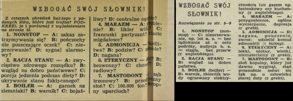 Archiwum / Wzbogać swój słownik nr 946 (21/1963) 39747/123969 Podziel się Tytuł Wzbogać swój słownik Rubryka Wzbogać swój słownik Artykuł z numeru 946 (21/1963) Data wydania 26 maja 1963 Tagi wzbogać swój słownik trudne słowa