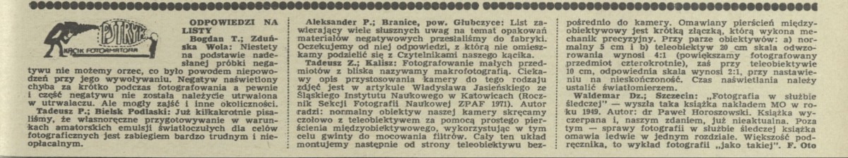 Archiwum / Różności nr 1419 (25/1972) 35/90 Podziel się Tytuł Pstryk. Kącik fotoamatora Autor F.OTO Kategoria Różności Artykuł z numeru 1419 (25/1972) Data wydania 18 czerwca 1972 Tagi pstryk fotografia fotoamator