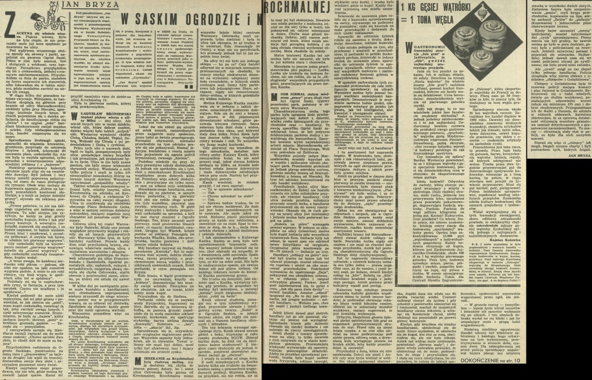 Archiwum / Artykuł nr 1083 (02/1966) 45359/123969 Podziel się Tytuł W Saskim Ogrodzie i na Krochmalnej Autor Jan Bryza Kategoria Artykuł Artykuł z numeru 1083 (2/1966) Data wydania 9 stycznia 1966 Tagi przedwojenna Warszawa ul. Nalewki ul. Krochmalna