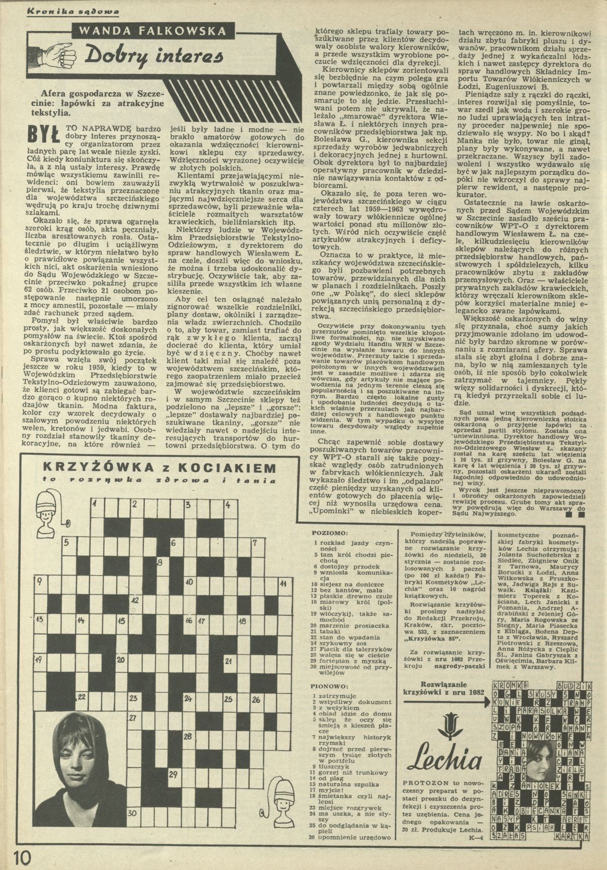 Archiwum / Kronika sądowa nr 1085 (04/1966) 07/98 Podziel się Tytuł Dobry interes Autor Wanda Falkowska Rubryka Kronika sądowa Artykuł z numeru 1085 (4/1966) Data wydania 23 stycznia 1966