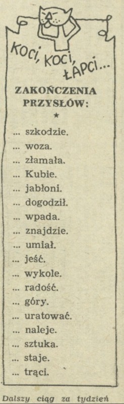 Archiwum / Koci, koci, łapci nr 1049 (20/1965) 44021/123969 Podziel się Tytuł Koci, koci łapci... Rubryka Koci, koci, łapci Artykuł z numeru 1049 (20/1965) Data wydania 16 maja 1965