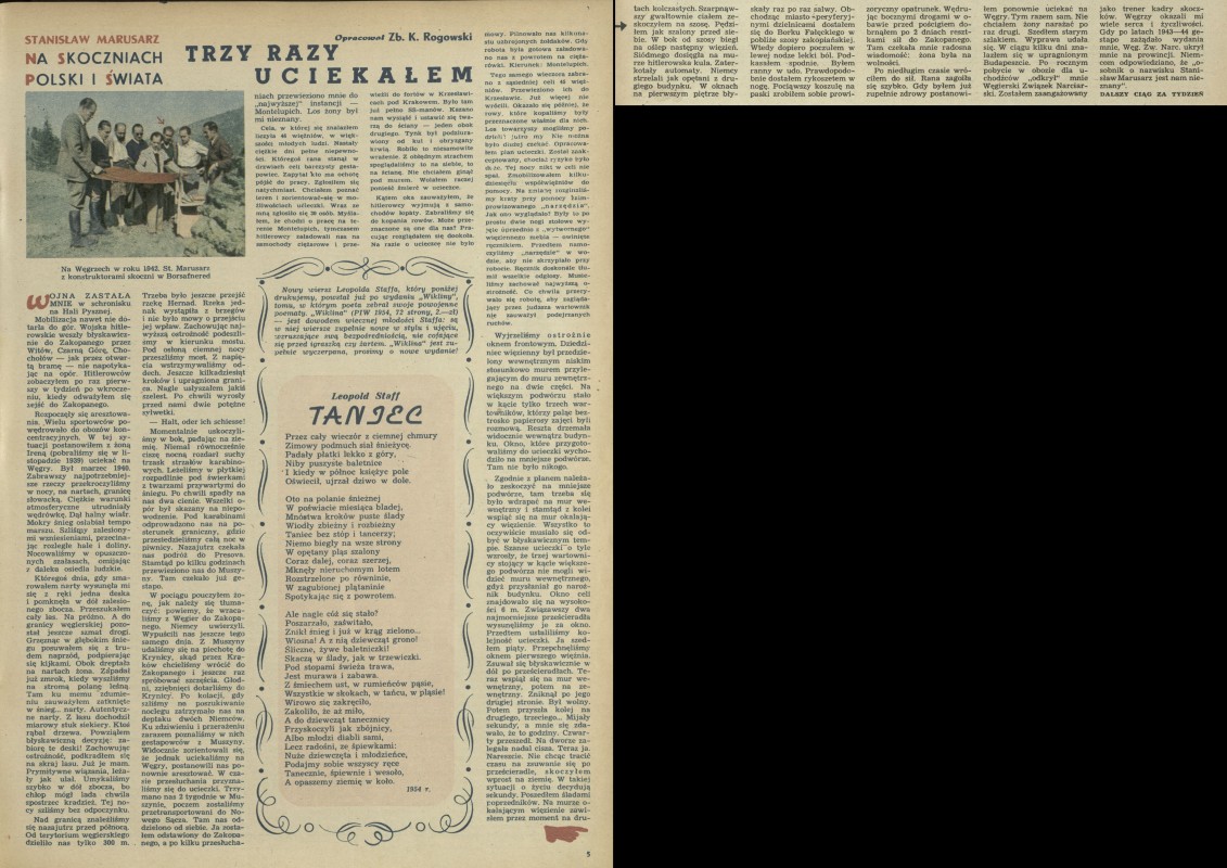 Archiwum / Sport nr 466 (11/1954) 21/75 Podziel się Tytuł Stanisław Marusarz na skoczniach Polski i świata Autor Zbigniew K. Rogowski Rubryka Sport Artykuł z numeru 466 (11/1954) Data wydania 14 marca 1954