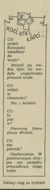 Archiwum / Koci, koci, łapci nr 713 (49/1958) 101/101 Podziel się Tytuł Koci, koci, łapci... Rubryka Koci, koci, łapci Artykuł z numeru 713 (49/1958) Data wydania 7 grudnia 1958