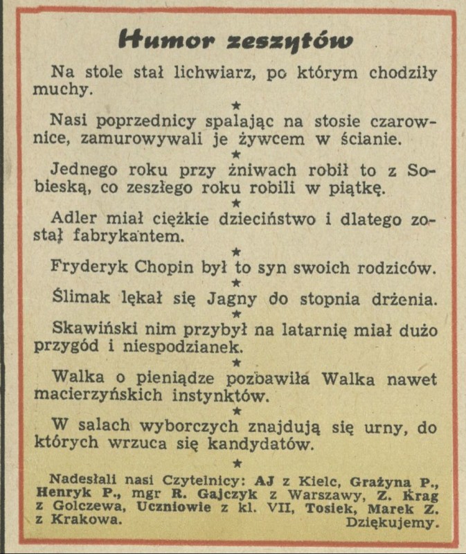Archiwum / Humor zeszytów szkolnych nr 1051 (22/1965) 209/409 Podziel się Tytuł Humor zeszytów Rubryka Humor zeszytów szkolnych Artykuł z numeru 1051 (22/1965) Data wydania 30 maja 1965
