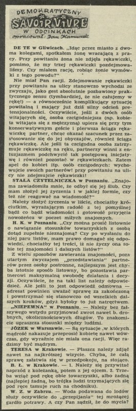 Archiwum / Demokratyczny savoir-vivre nr 258 (12/1950) 40/49 Podziel się Tytuł Demokratyczny savoir-vivre Autor Jan Kamyczek Rubryka Demokratyczny savoir-vivre Artykuł z numeru 258 (12/1950) Data wydania 19 marca 1950