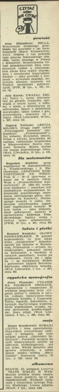 Archiwum / Czytać albo nie czytać? nr 1082 (01/1966) 03/108 Podziel się Tytuł Czytać albo nie czytać? Rubryka Czytać albo nie czytać? Artykuł z numeru 1082 (1/1966) Data wydania 1 stycznia 1966 Tagi Olgierd Terlecki: Lekcja miłości