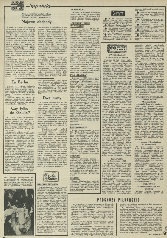 Archiwum / Przekrój tygodnia nr 1099 (18/1966) 46006/123969 Podziel się Tytuł Przekrój tygodnia Rubryka Przekrój tygodnia Artykuł z numeru 1099 (18/1966) Data wydania 1 maja 1966
