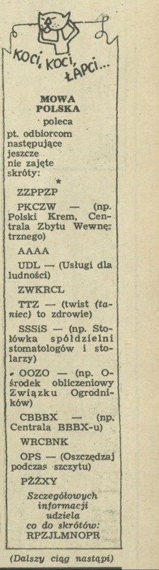 Archiwum / Koci, koci, łapci nr 1072 (43/1965) 272/280 Podziel się Tytuł Koci, koci, łapci Rubryka Koci, koci, łapci Artykuł z numeru 1072 (43/1965) Data wydania 24 października 1965