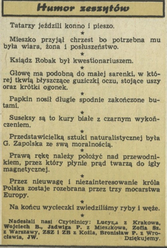 Archiwum / Humor zeszytów szkolnych nr 1089 (08/1966) 65/354 Podziel się Tytuł Humor zeszytów Rubryka Humor zeszytów szkolnych Artykuł z numeru 1089 (8/1966) Data wydania 20 lutego 1966