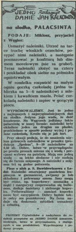 Archiwum / Jedno danie nr 896 (23/1962) 75/1504 Podziel się Tytuł Jedno danie na słodko - palacsinta Autor Jan Kalkowski Rubryka Jedno danie Artykuł z numeru 896 (23/1962) Data wydania 10 czerwca 1962 Tagi gastronomia kulinaria przepis kulinarny kuchnia węgierska naleśniki