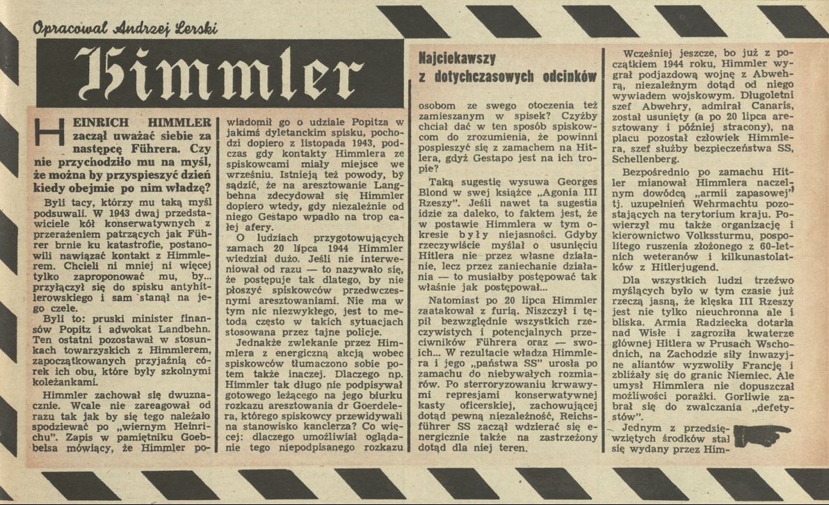 Archiwum / Artykuł nr 1079 (50/1965) 247/416 Podziel się Tytuł Himmler Autor Andrzej Lerski Kategoria Artykuł Artykuł z numeru 1079 (50/1965) Data wydania 12 grudnia 1965 Tagi Himmler gestapo