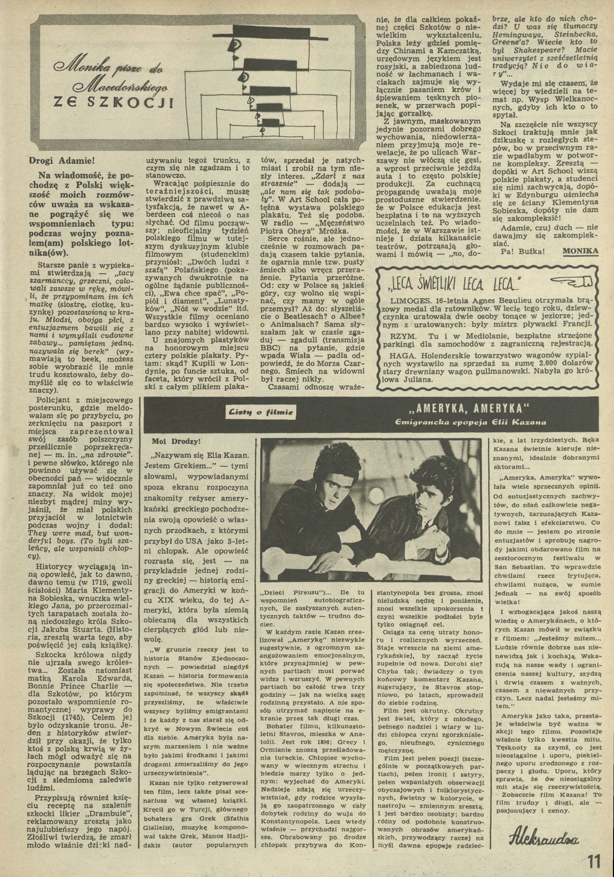 Archiwum / Artykuł nr 1079 (50/1965) 77110/121061 Podziel się Tytuł Monika pisze do Macedońskiego ze Szkocji Kategoria Artykuł Artykuł z numeru 1079 (50/1965) Data wydania 12 grudnia 1965