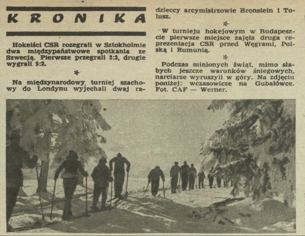 Archiwum / Kronika (sportowa) nr 456 (01/1954) 84/85 Podziel się Tytuł Kronika (sportowa) Autor CAF Rubryka Kronika (sportowa) Artykuł z numeru 456 (1/1954) Data wydania 3 stycznia 1954 Tagi Gubałówka
