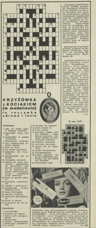Archiwum / Krzyżówka z kociakiem nr 1420 (26/1972) 75/405 Podziel się Tytuł Krzyżówka z kociakiem Rubryka Krzyżówka z kociakiem Artykuł z numeru 1420 (26/1972) Data wydania 25 czerwca 1972 Tagi krzyżówka z kociakiem