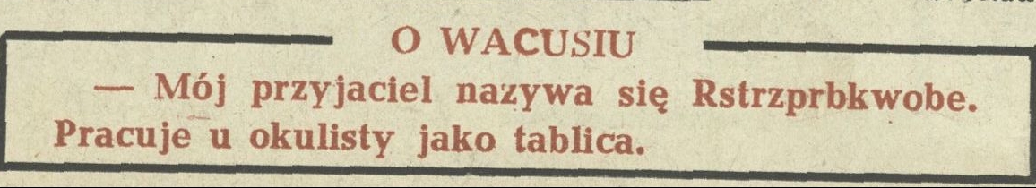 Archiwum / O Wacusiu nr 994 (17/1964) 41763/123969 Podziel się Tytuł O Wacusiu Rubryka O Wacusiu Artykuł z numeru 994 (17/1964) Data wydania 26 kwietnia 1964 Tagi humor rozmaitości rozrywka
