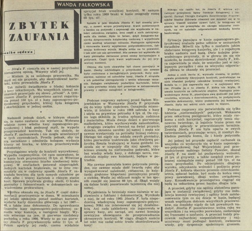 Archiwum / Kronika sądowa nr 1421 (27/1972) 57897/123969 Podziel się Tytuł Kronika sądowa: zbytek zaufania Autor Wanda Falkowska Rubryka Kronika sądowa Artykuł z numeru 1421 (27/1972) Data wydania 2 lipca 1972 Tagi kronika sądowa Wanda Falkowska