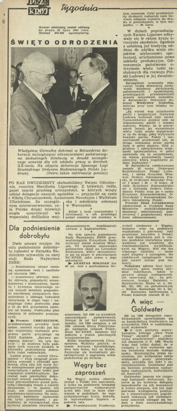 Archiwum / Przekrój tygodnia nr 1007 (30/1964) 1311/3219 Podziel się Tytuł Przekrój Tygodnia Rubryka Przekrój tygodnia Artykuł z numeru 1007 (30/1964) Data wydania 26 lipca 1964 Tagi odznaczenia państwowe w Belwederze Gomułka Chruszczow
