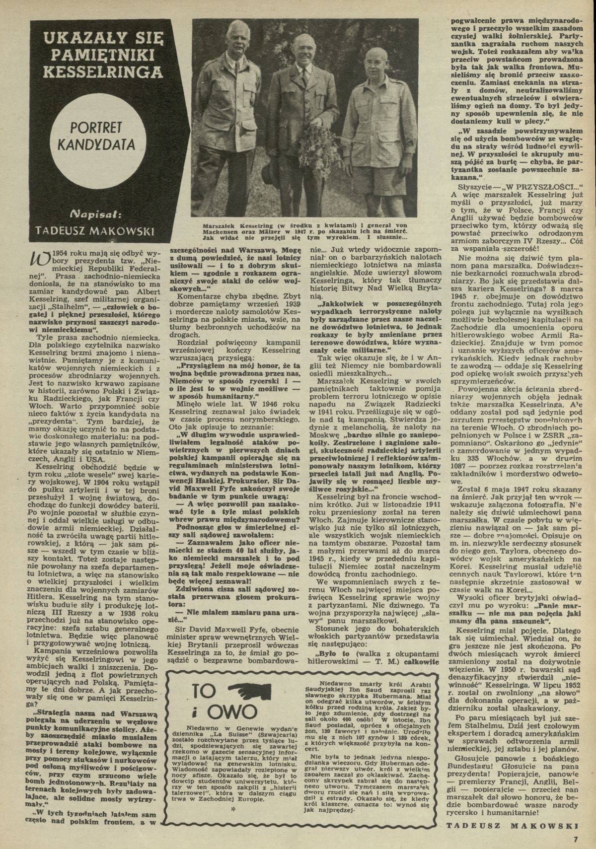 Archiwum / Artykuł nr 458 (03/1954) 16683/123969 Podziel się Tytuł Ukazały się pamiętniki Kesselringa. Portret kandydata Autor Tadeusz Makowski Kategoria Artykuł Artykuł z numeru 458 (3/1954) Data wydania 17 stycznia 1954