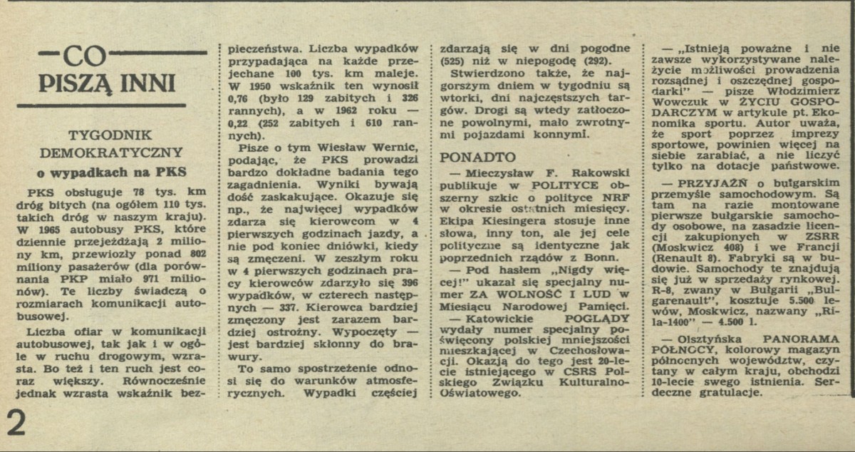 Archiwum / Co piszą inni nr 1150 (17/1967) 2/7 Podziel się Tytuł Co piszą inni Rubryka Co piszą inni Artykuł z numeru 1150 (17/1967) Data wydania 23 kwietnia 1967 Tagi Tygodnik Demokratyczny Ponadto Mieczyslaw Rakowski Wiesław Wernic