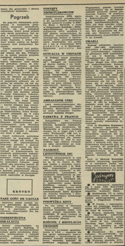 Archiwum / Krótko nr 1151 (18/1967) 271/332 Podziel się Tytuł Krótko Rubryka Krótko Artykuł z numeru 1151 (18/1967) Data wydania 1 maja 1967 Tagi Konrad Adenauer de Gaulle Antonin Gregor Edward Kowalski
