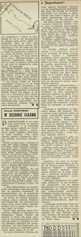 Archiwum / korespondencja własna "Przekroju" nr 1121 (40/1966) 46956/123969 Podziel się Tytuł W sezonie ciasno Autor Roman Burzyński Rubryka korespondencja własna "Przekroju" Artykuł z numeru 1121 (40/1966) Data wydania 2 października 1966