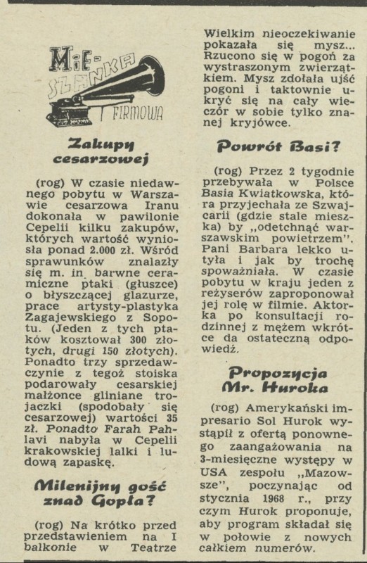 Archiwum / Mieszanka firmowa nr 1121 (40/1966) 46961/123969 Podziel się Tytuł Mieszanka firmowa Rubryka Mieszanka firmowa Artykuł z numeru 1121 (40/1966) Data wydania 2 października 1966