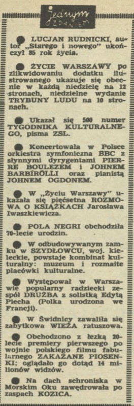 Archiwum / Jednym zdaniem nr 1136 (03/1967) 46166/121061 Podziel się Tytuł Jednym zdaniem Rubryka Jednym zdaniem Artykuł z numeru 1136 (3/1967) Data wydania 15 stycznia 1967 Tagi Lucjan Rudnicki Tygodnik Kulturalny Pola Negri