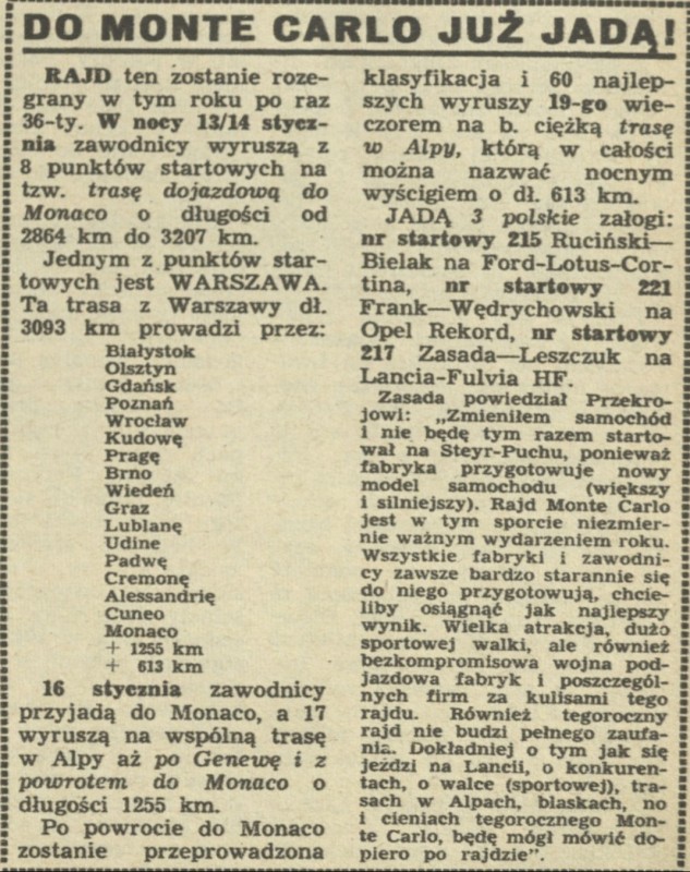 Archiwum / Relacja nr 1136 (03/1967) 46170/121061 Podziel się Tytuł Do Monte Carlo już jadą Kategoria Relacja Artykuł z numeru 1136 (3/1967) Data wydania 15 stycznia 1967 Tagi rajd MC Monte Carlo