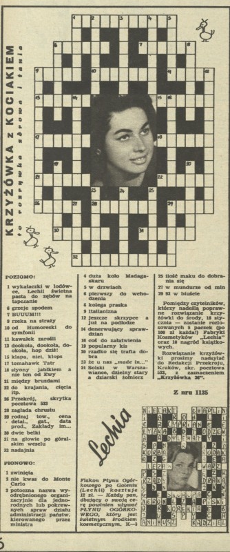 Archiwum / Krzyżówka z kociakiem nr 1136 (03/1967) 49/51 Podziel się Tytuł Krzyżówka z kociakiem Rubryka Krzyżówka z kociakiem Artykuł z numeru 1136 (3/1967) Data wydania 15 stycznia 1967 Tagi krzyżówka z kociakiem