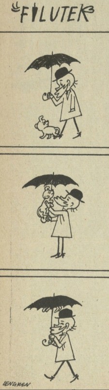 Archiwum / Profesor Filutek nr 1128 (47/1966) 196/2107 Podziel się Tytuł Prof. Filutek Autor Zbigniew Lengren Rubryka Profesor Filutek Artykuł z numeru 1128 (47/1966) Data wydania 20 listopada 1966 Tagi żart rysunkowy pies Filuś parasol