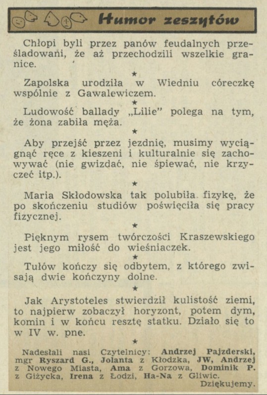 Archiwum / Humor zeszytów szkolnych nr 1143 (10/1967) 38/47 Podziel się Tytuł Humor zeszytów Rubryka Humor zeszytów szkolnych Artykuł z numeru 1143 (10/1967) Data wydania 5 marca 1967
