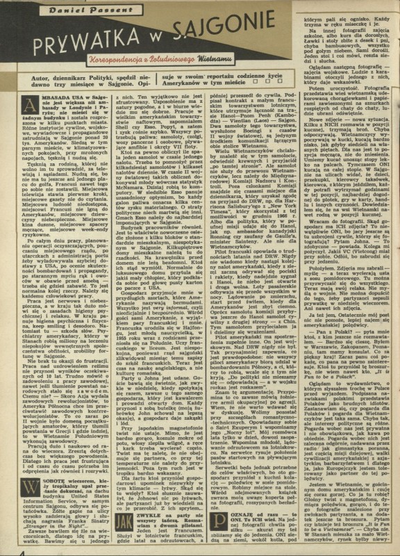 Archiwum / korespondencja własna "Przekroju" nr 1144 (11/1967) 05/57 Podziel się Tytuł Prywatka w Sajgonie Autor Daniel Passent Rubryka korespondencja własna "Przekroju" Artykuł z numeru 1144 (11/1967) Data wydania 12 marca 1967 Tagi Wietnam