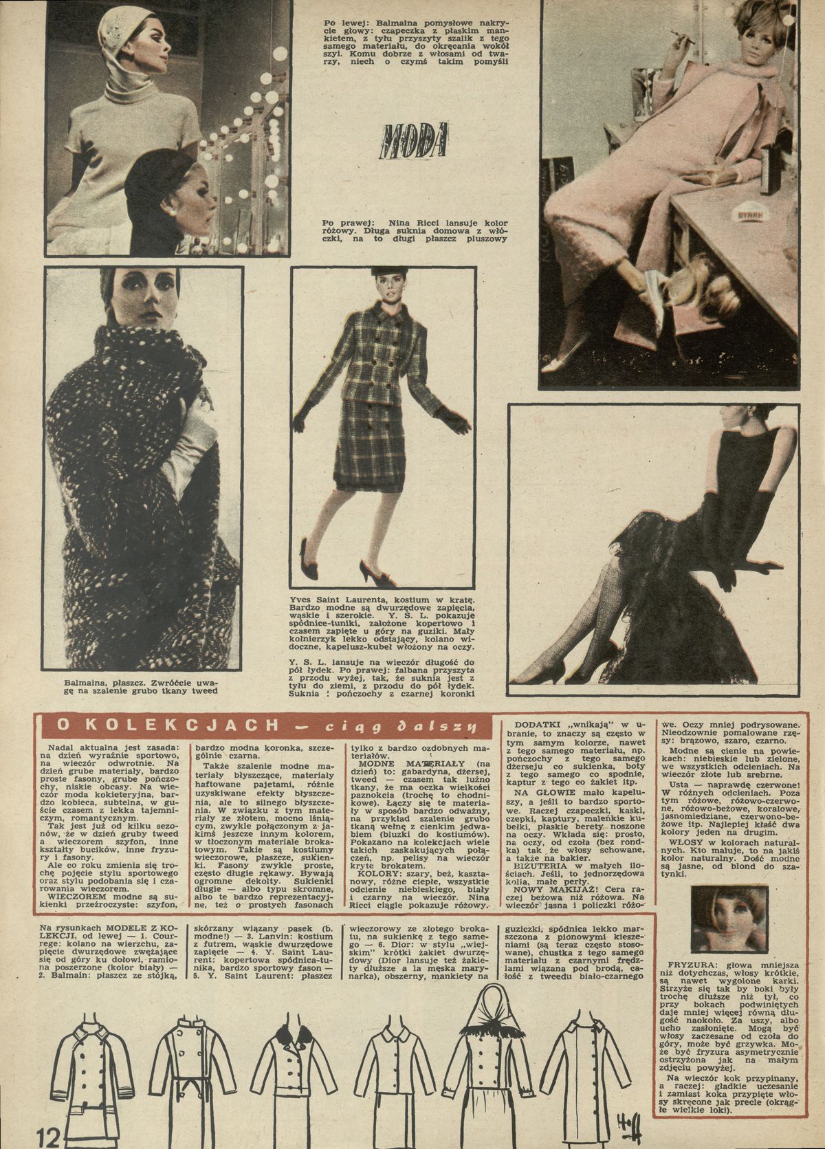 Archiwum / Moda nr 1017 (40/1964) 4/4 Podziel się Tytuł O kolekcjach - ciąg dalszy Autor Barbara Hoff Rubryka Moda Artykuł z numeru 1017 (40/1964) Data wydania 4 października 1964 Tagi kolekcje ubrań moda damska Nina Ricci Balmain Yves Saint Laurent