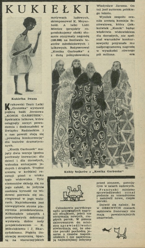 Archiwum / Kultura nr 262 (16/1950) 02/12 Podziel się Tytuł Kukiełki Kategoria Kultura Artykuł z numeru 262 (16/1950) Data wydania 16 kwietnia 1950 Tagi Krakowski Teatr Lalki Jarema Meyerhold