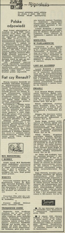 Archiwum / Krótko nr 1100 (19/1966) 372/889 Podziel się Tytuł Krótko Rubryka Krótko Artykuł z numeru 1100 (19/1966) Data wydania 8 maja 1966 Tagi trzęsienie ziemi wizyty