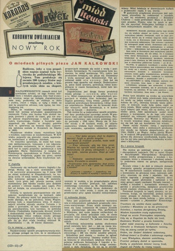 Archiwum / Artykuł nr specjalny 51/1969 52824/123969 Podziel się Tytuł Koronnym dwójniakiem powitamy Nowy Rok Autor Jan Kalkowski Kategoria Artykuł Artykuł z numeru nr specjalny 51/1969 Data wydania 21 grudnia 1969 Tagi miód pitny alkohol