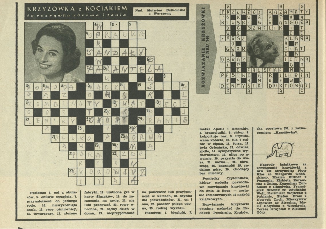 Archiwum / Krzyżówka z kociakiem nr 743 (27/1959) 211/2061 Podziel się Tytuł Krzyżówka z kociakiem Rubryka Krzyżówka z kociakiem Artykuł z numeru 743 (27/1959) Data wydania 5 lipca 1959