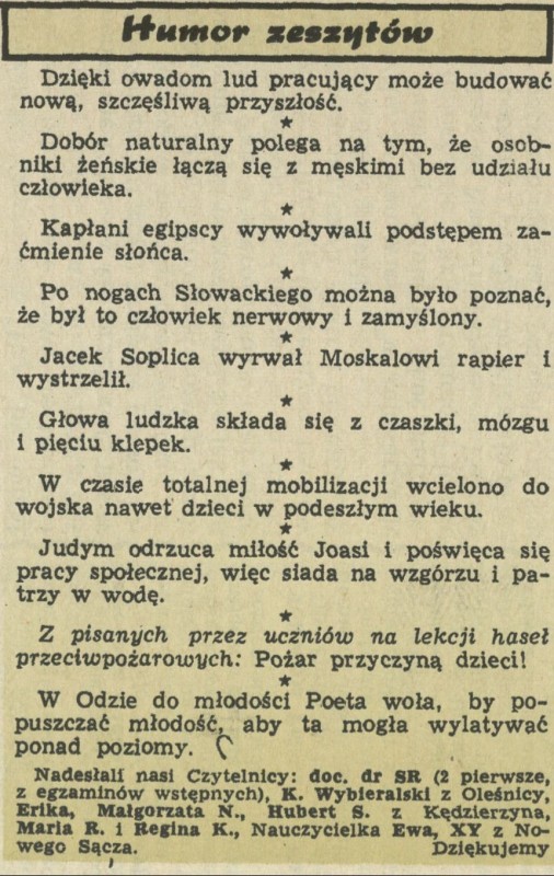 Archiwum / Humor zeszytów szkolnych nr 1101 (20/1966) 809/2107 Podziel się Tytuł Humor zeszytów Rubryka Humor zeszytów szkolnych Artykuł z numeru 1101 (20/1966) Data wydania 15 maja 1966