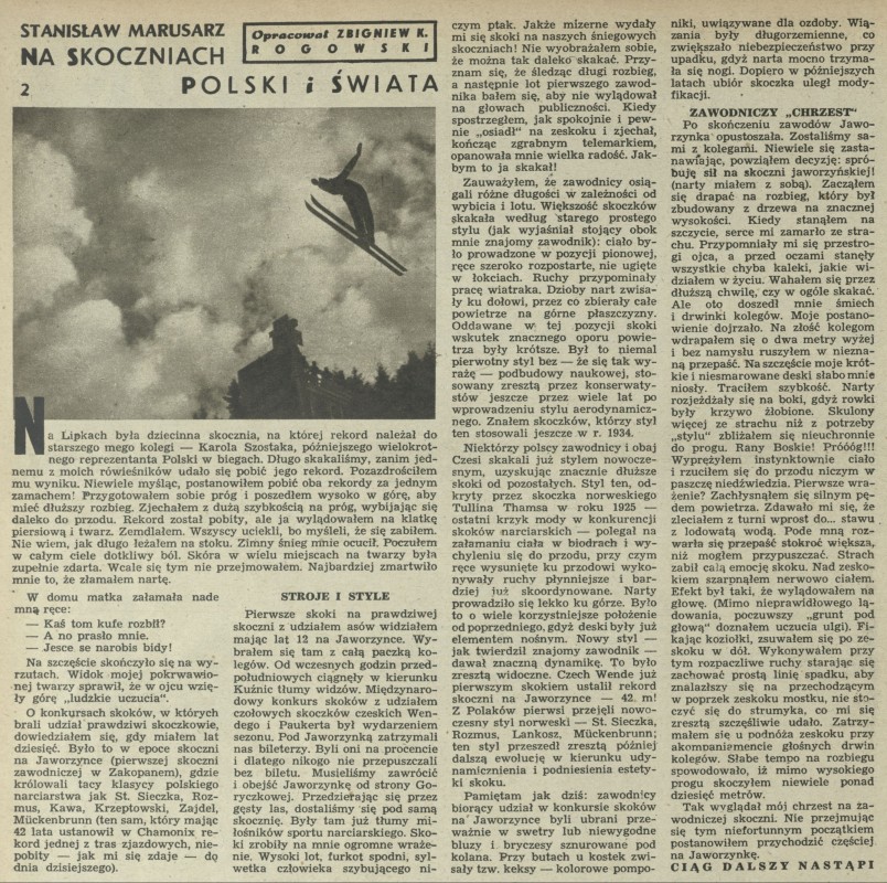 Archiwum / Sport nr 460 (05/1954) 04/21 Podziel się Tytuł Stanisław Marusarz na skoczniach Polski i Świata Autor Zbigniew K. Rogowski Rubryka Sport Artykuł z numeru 460 (5/1954) Data wydania 31 stycznia 1954 Tagi skoki narciarskie