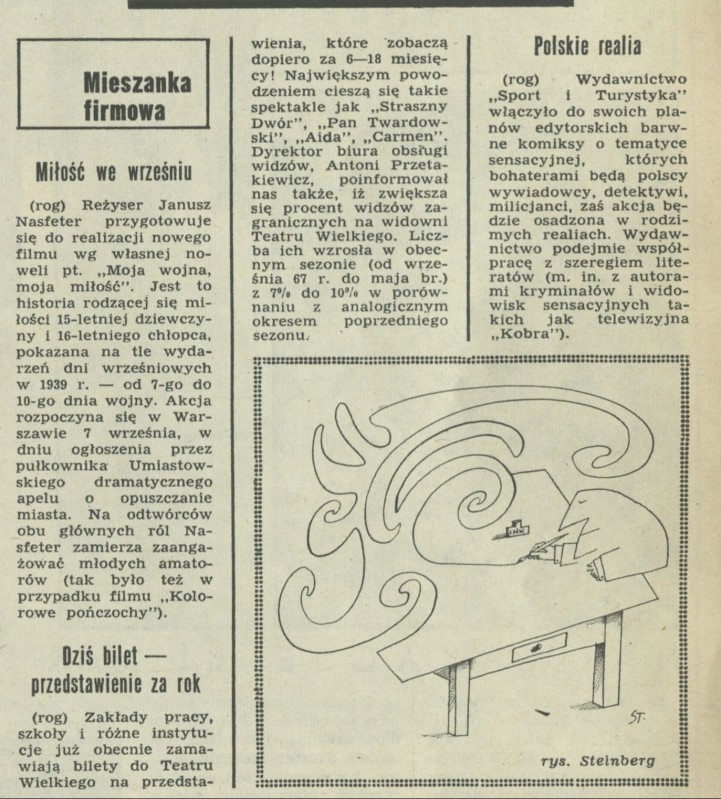 Archiwum / Mieszanka firmowa nr 1209 (23/1968) 30/59 Podziel się Tytuł Mieszanka firmowa Rubryka Mieszanka firmowa Artykuł z numeru 1209 (23/1968) Data wydania 9 czerwca 1968