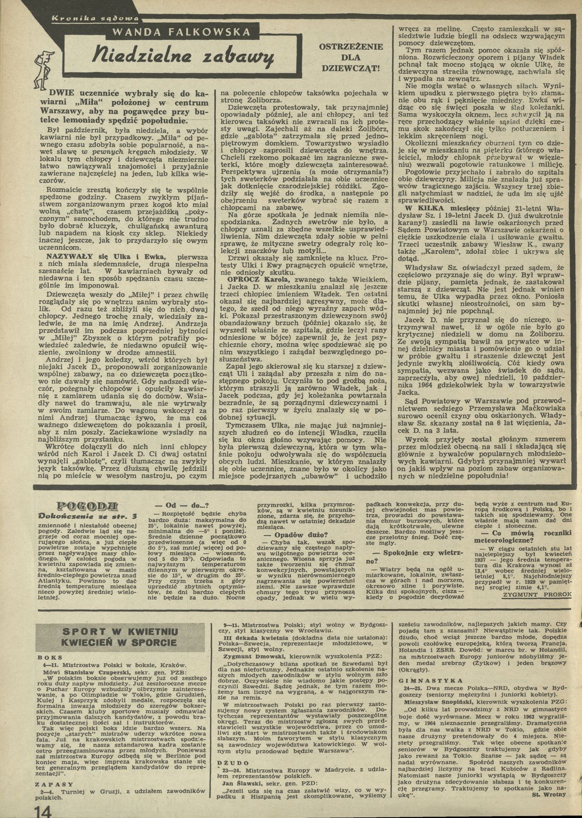Archiwum / Kronika sądowa nr 1043 (14/1965) 15/53 Podziel się Tytuł Kronika sądowa: niedzielne zabawy Autor Wanda Falkowska Rubryka Kronika sądowa Artykuł z numeru 1043 (14/1965) Data wydania 4 kwietnia 1965 Tagi uwiedzenie próba gwałtu