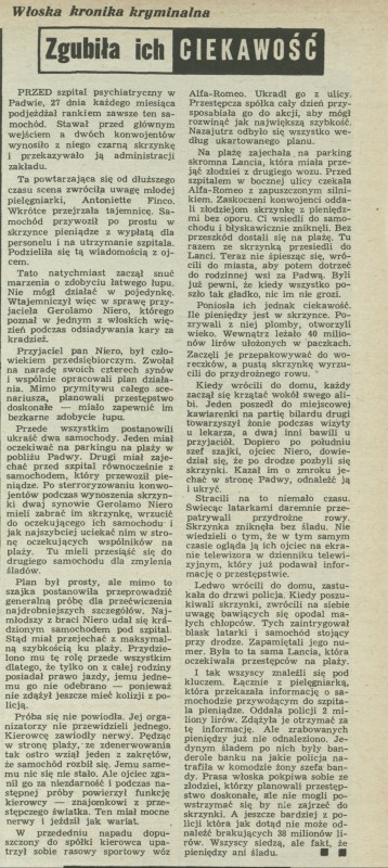 Archiwum / Proza nr 1112 (31/1966) 46577/123969 Podziel się Tytuł Zgubiła ich ciekawość Kategoria Proza Artykuł z numeru 1112 (31/1966) Data wydania 31 lipca 1966 Tagi Zgubiła ich ciekawość włoska kronika kryminalna