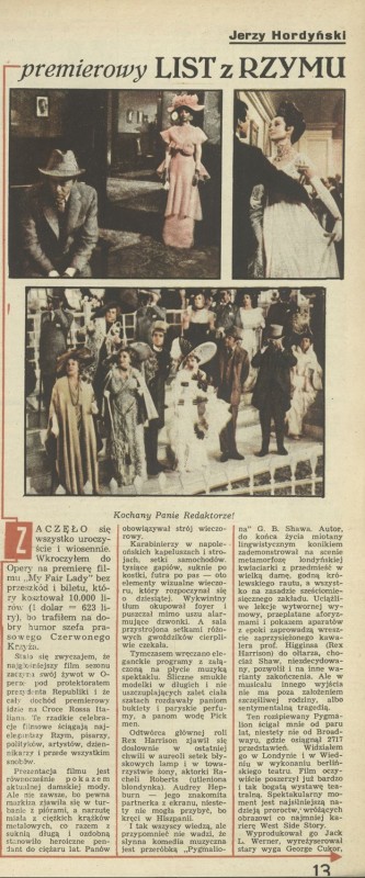 Archiwum / Film nr 1046 (17/1965) 15/54 Podziel się Tytuł Premierowy list z Rzymu Autor Jerzy Hordyński Rubryka Film Artykuł z numeru 1046 (17/1965) Data wydania 25 kwietnia 1965 Tagi premiera Rzym