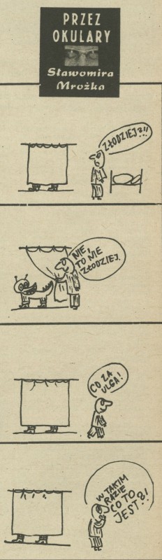 Archiwum / Przez okulary Sławomira Mrożka nr 1050 (21/1965) 158/373 Podziel się Tytuł Przez okulary Sławomira Mrożka Autor Sławomir Mrożek Rubryka Przez okulary Sławomira Mrożka Artykuł z numeru 1050 (21/1965) Prawa Diogenes Verlag AG Data wydania 23 maja 1965 Tagi satyra absurd żart rysunkowy złodziej