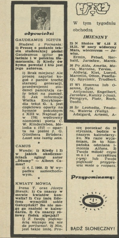Archiwum / Skrzynka odpowiedzi nr 1046 (17/1965) 43886/123969 Podziel się Tytuł Skrzynka odpowiedzi Rubryka Skrzynka odpowiedzi Artykuł z numeru 1046 (17/1965) Data wydania 25 kwietnia 1965 Tagi skrzynka odpowiedzi