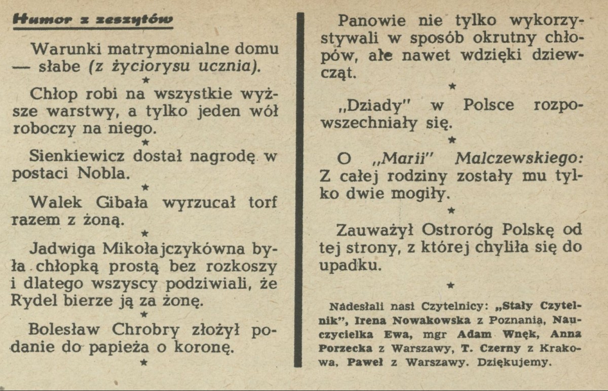 Archiwum / Humor zeszytów szkolnych nr 874 (01/1962) 59/1476 Podziel się Tytuł Humor zeszytów Rubryka Humor zeszytów szkolnych Artykuł z numeru 874 (1/1962) Data wydania 7 stycznia 1962